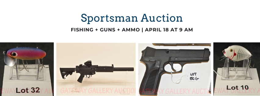 Preview Friday, April 17th from 3 pm– 5 pm Sellling from the late Glen Trego and others FISHING LURES: Approximately 40 lots of collectible lures including, CCBCO Dingbat Chub with…